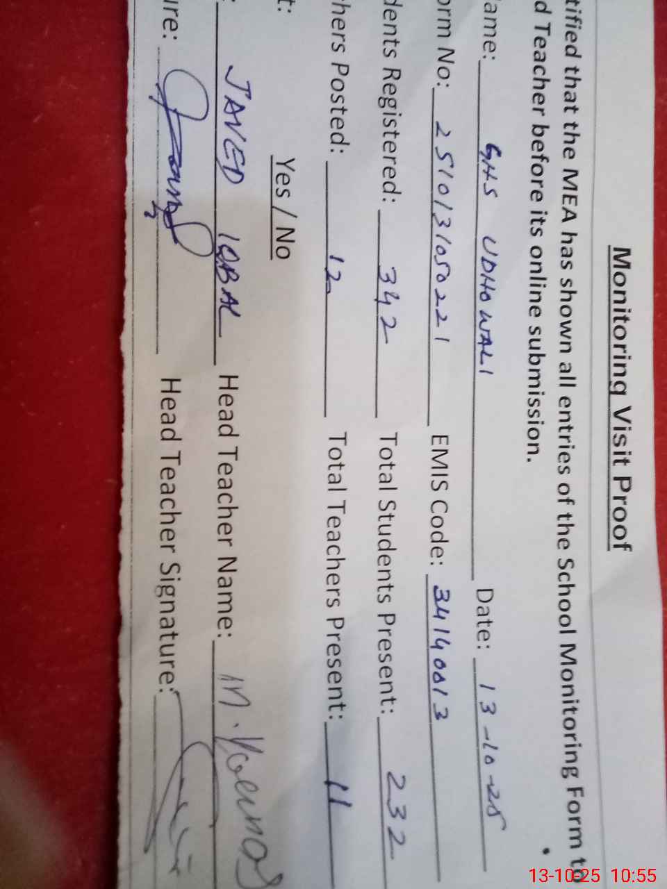 | EMIS Code: 34140013 | Name of School: GHS UDHOWALI | |||