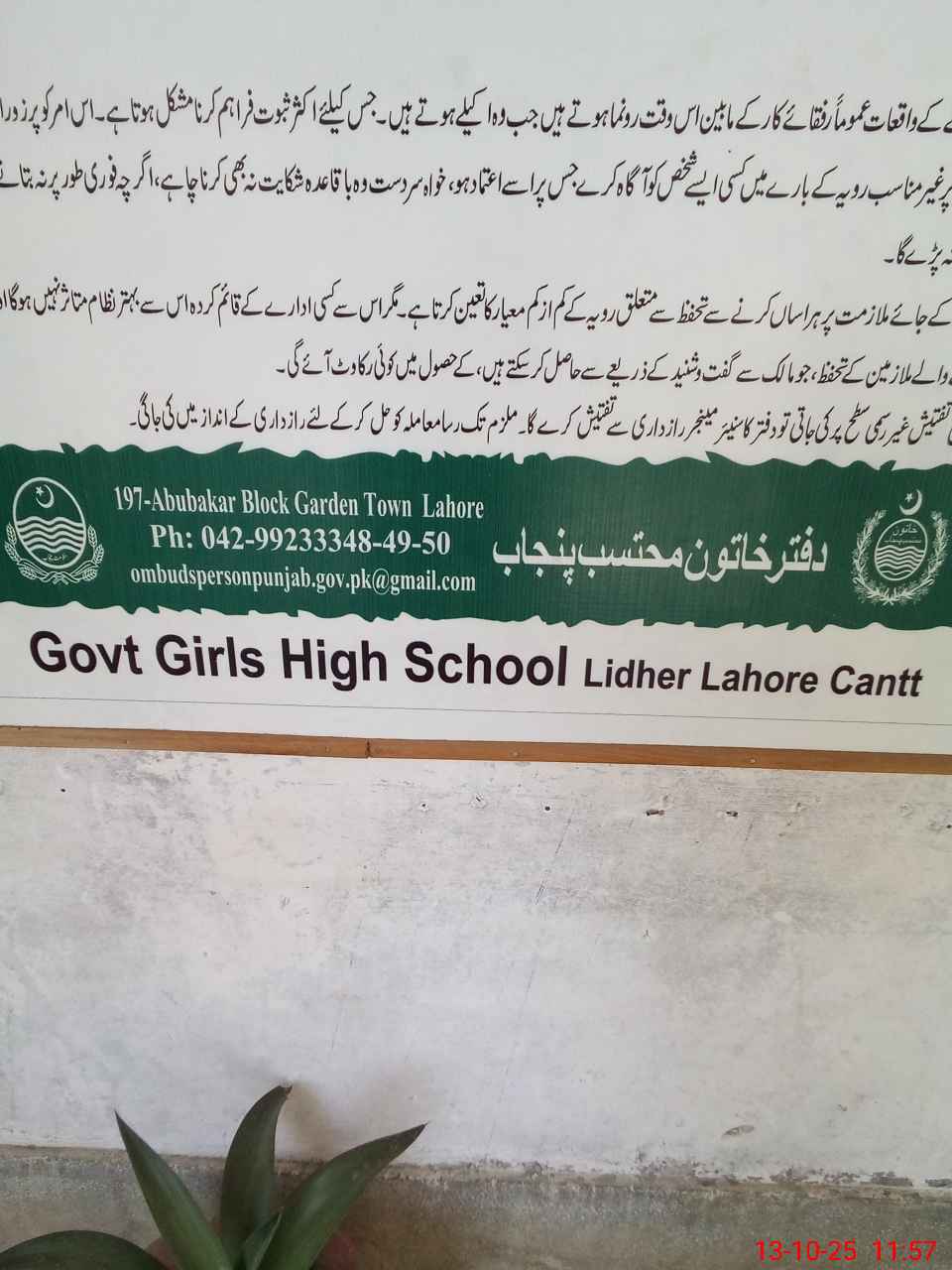 | District: LAHORE | Tehsil: CANTT | Markaz: SECONDARY-WING | Level: High | |