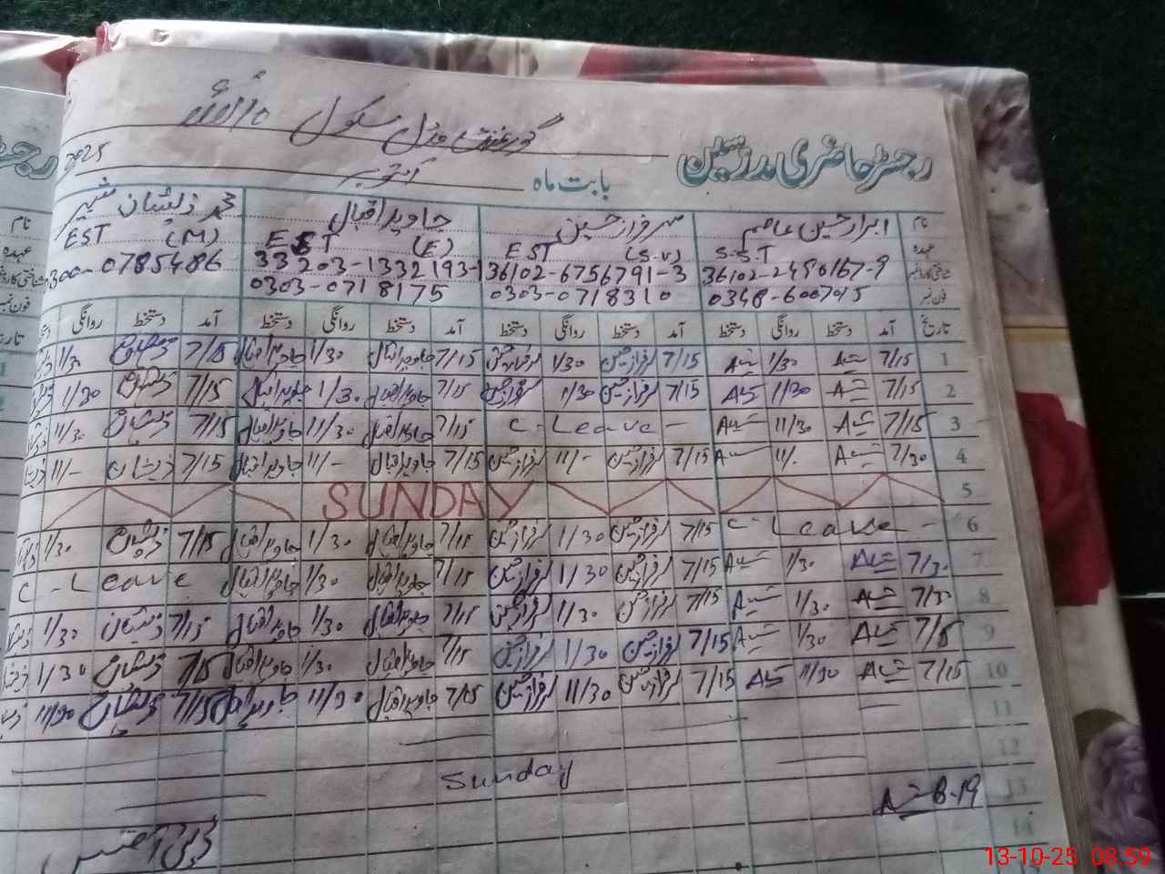 | Name: IB**** HU**** AA**** Designation: (School Headmaster's/Headmistress's) SST (G) Phone/Cell Number: 03**** |