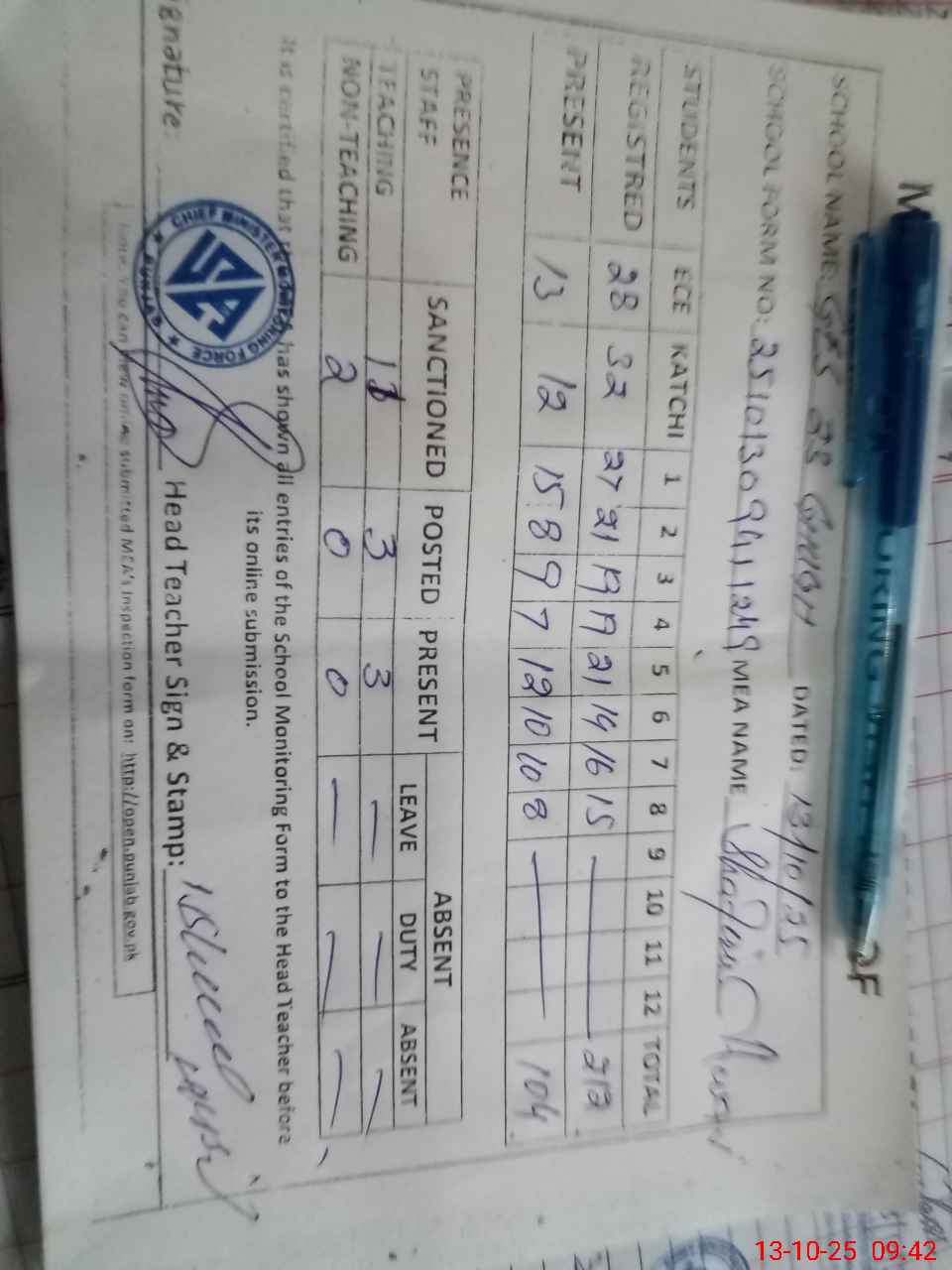 | Certified that this School was Inspected by the Undersigned MEA/DMO Today and the Information Stated Above is as Per Record. | |||||
