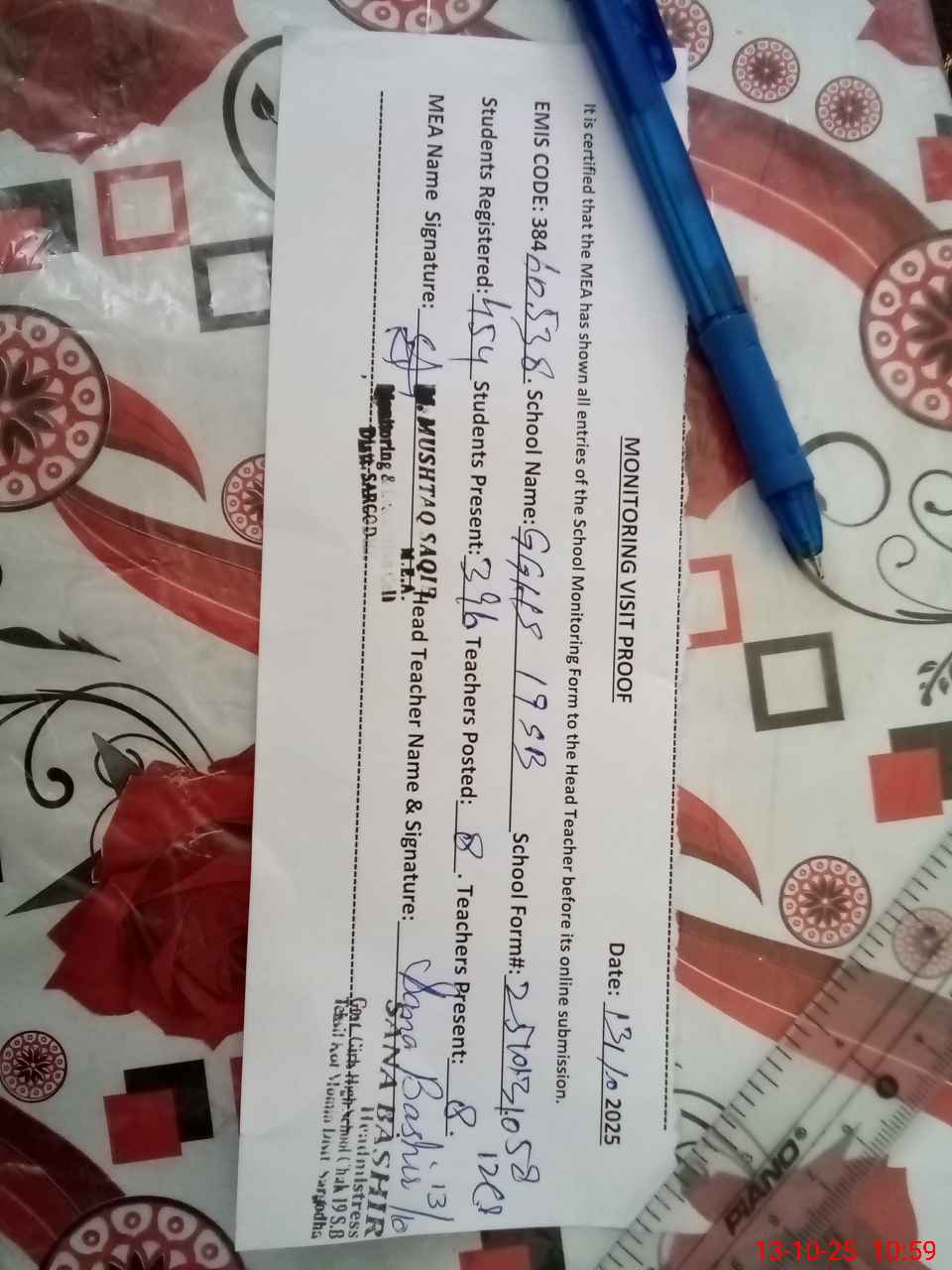 | Certified that this School was Inspected by the Undersigned MEA/DMO Today and the Information Stated Above is as Per Record. | |||||