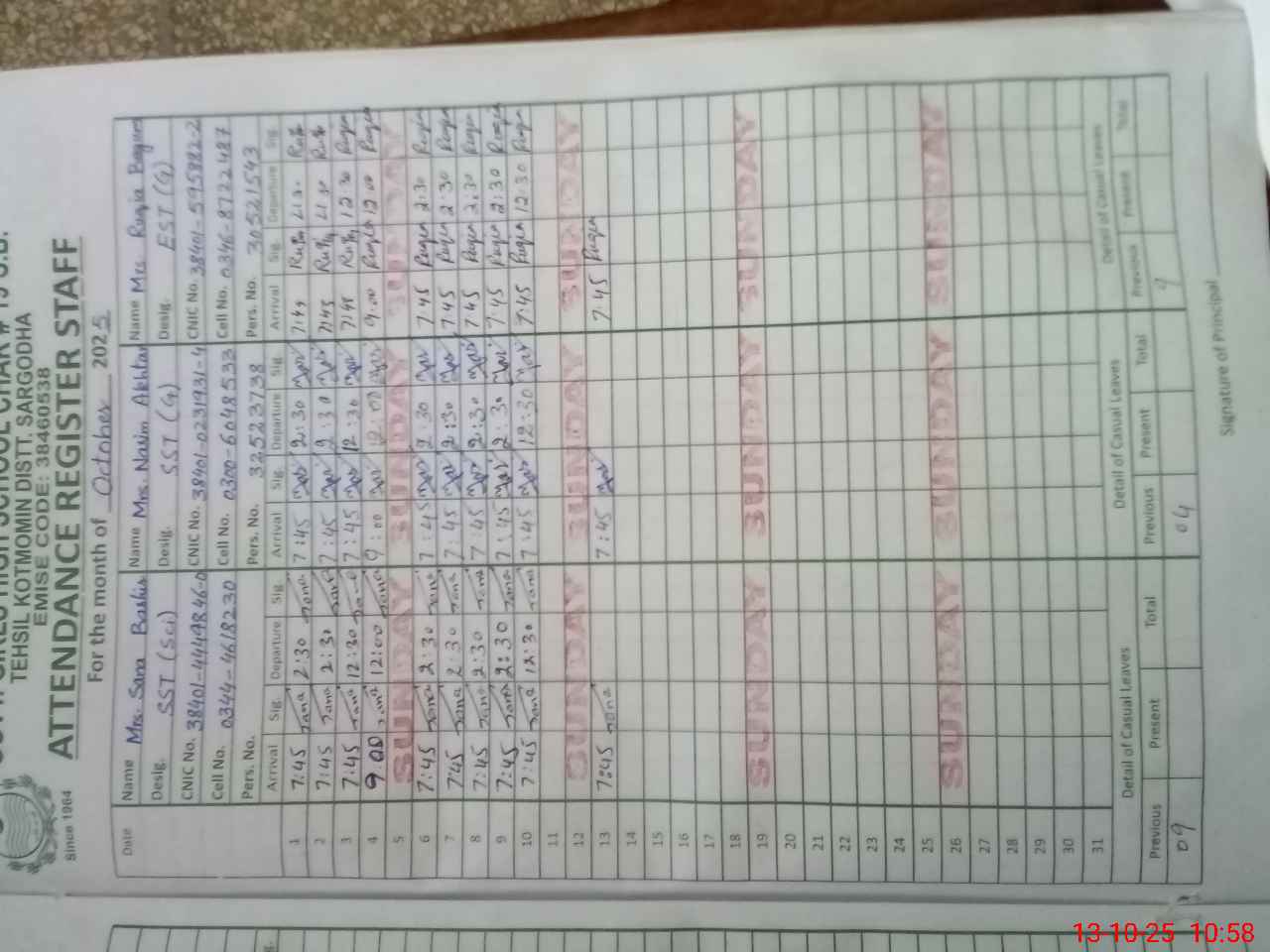| Name: SA**** BA**** Designation: (School Headmaster's/Headmistress's) SST SCIENCE (HEADMISTRESS) Phone/Cell Number: 03**** |