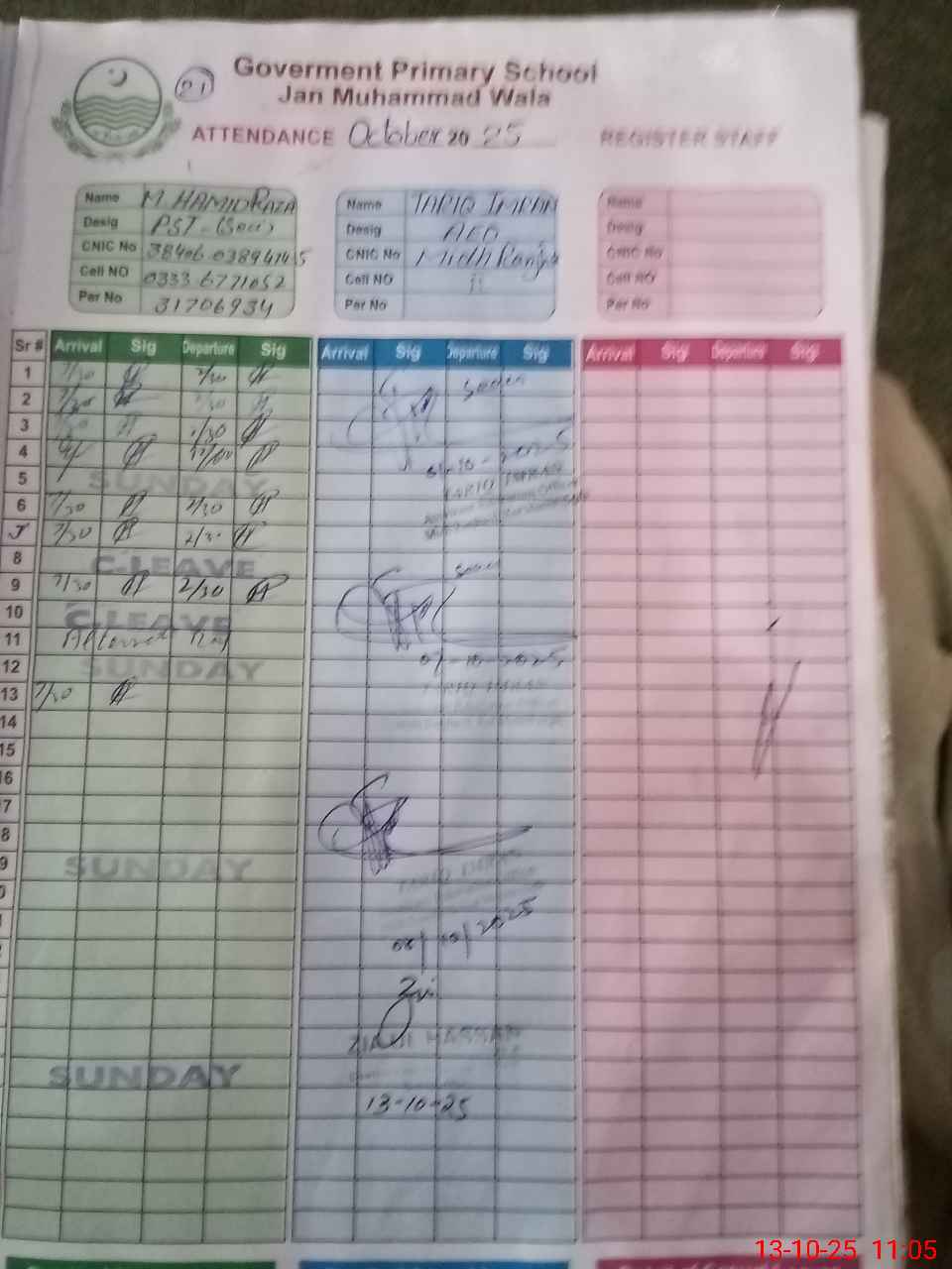 | CNIC | Full Name | Designation | R/C | Absence during last cal. month |