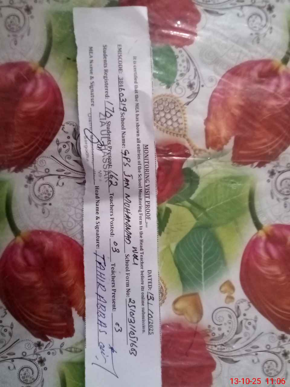 | EMIS Code: 38460319 | Name of School: GPS JAN MUHAMMAD WALA | |||