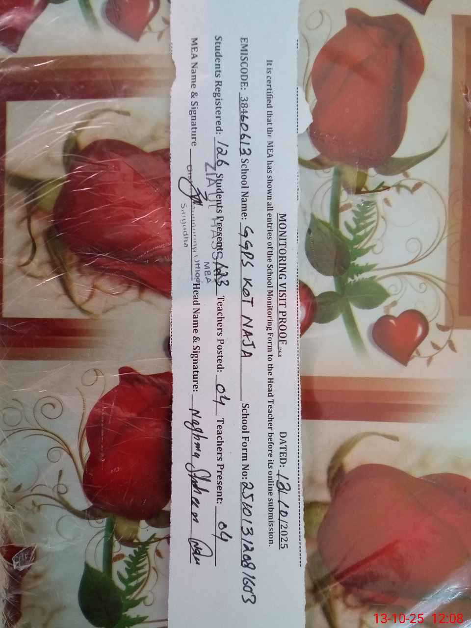 | Attendance Register | Head Teacher | MEA with School | Visit Proof |