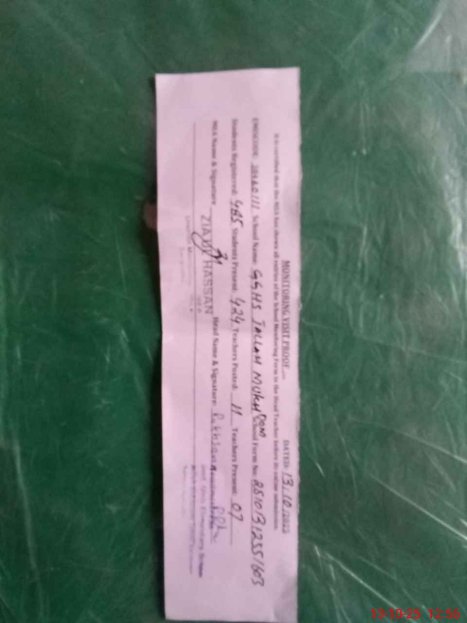 | Attendance Register | Head Teacher | MEA with School | Visit Proof |