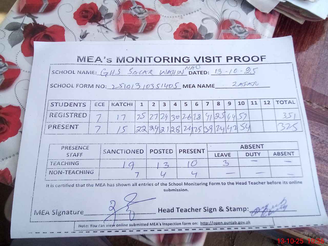 | EMIS Code: 36410028 | Name of School: GHS SALAR WAHIN NAU, NAWAN SHEHR | |||