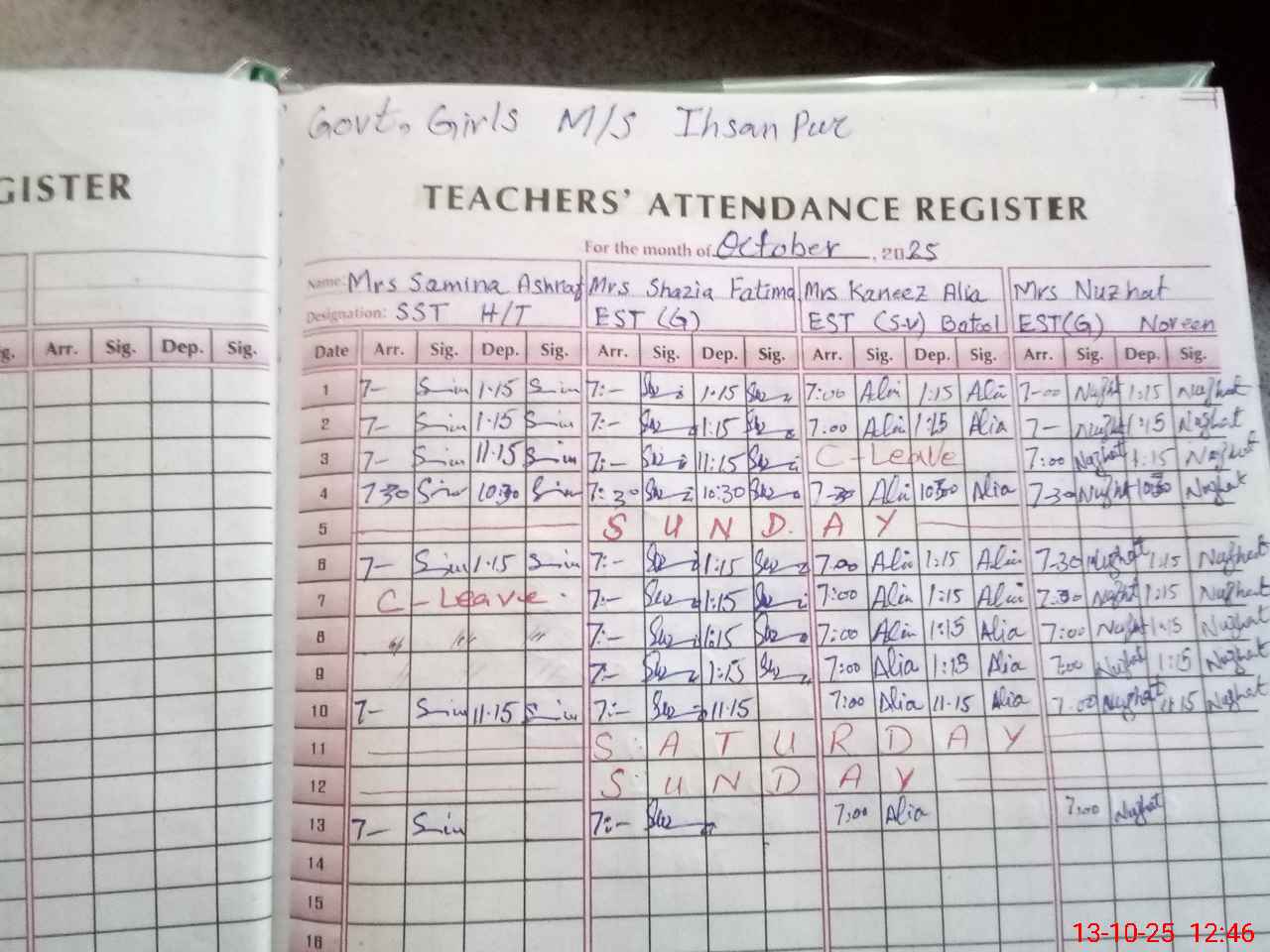 | CNIC | Full Name | Designation | R/C | Absence During Last Calender Month |