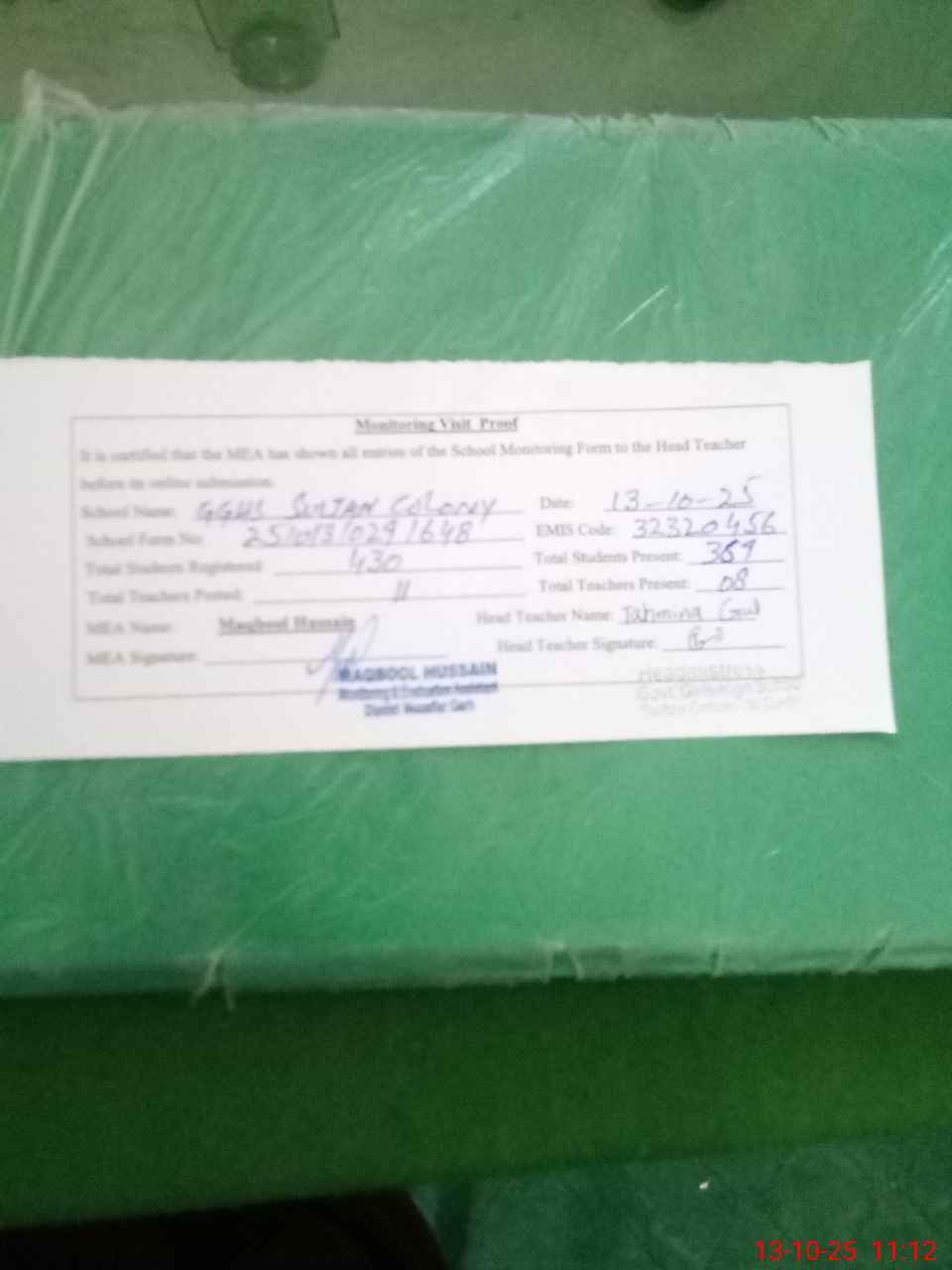 | EMIS Code: 32320456 | Name of School: GGHS SULTAN COLONY | |||