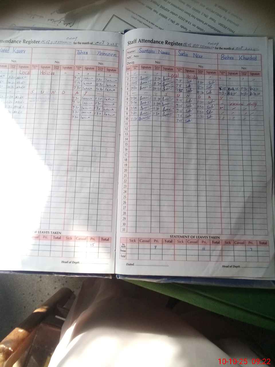 | Leave | Duty | Absent | Maternity | Medical | Ex- Pak |