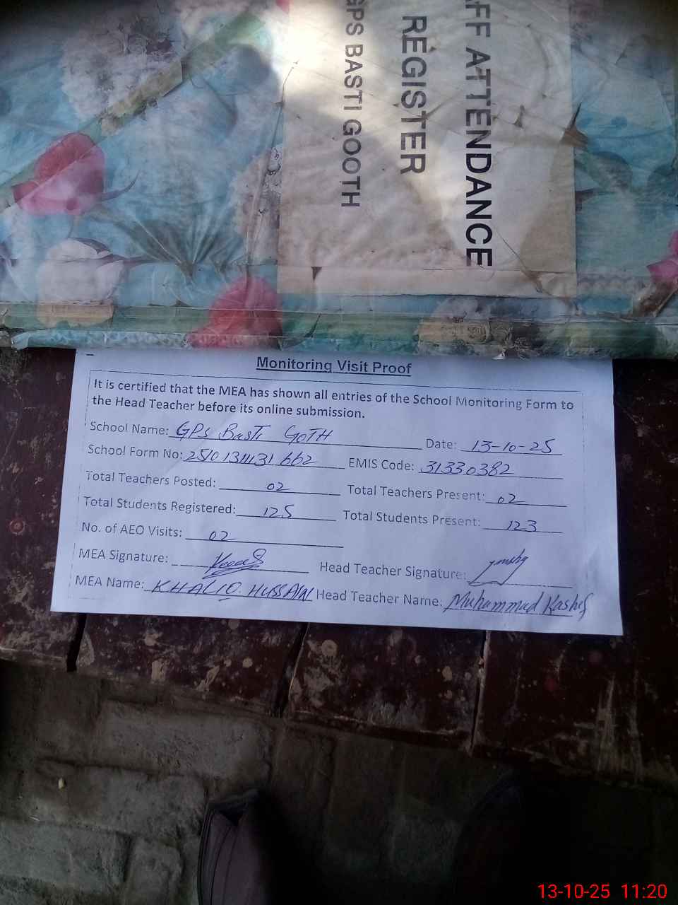 | EMIS Code: 31330382 | Name of School: GPS BASTI GOOTH | |||