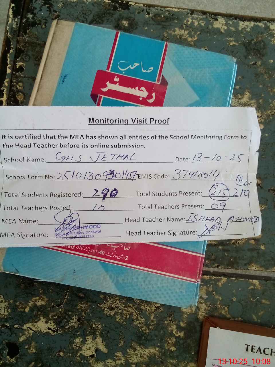 | EMIS Code: 37410014 | Name of School: GHS JETHAL CHAKWAL | |||