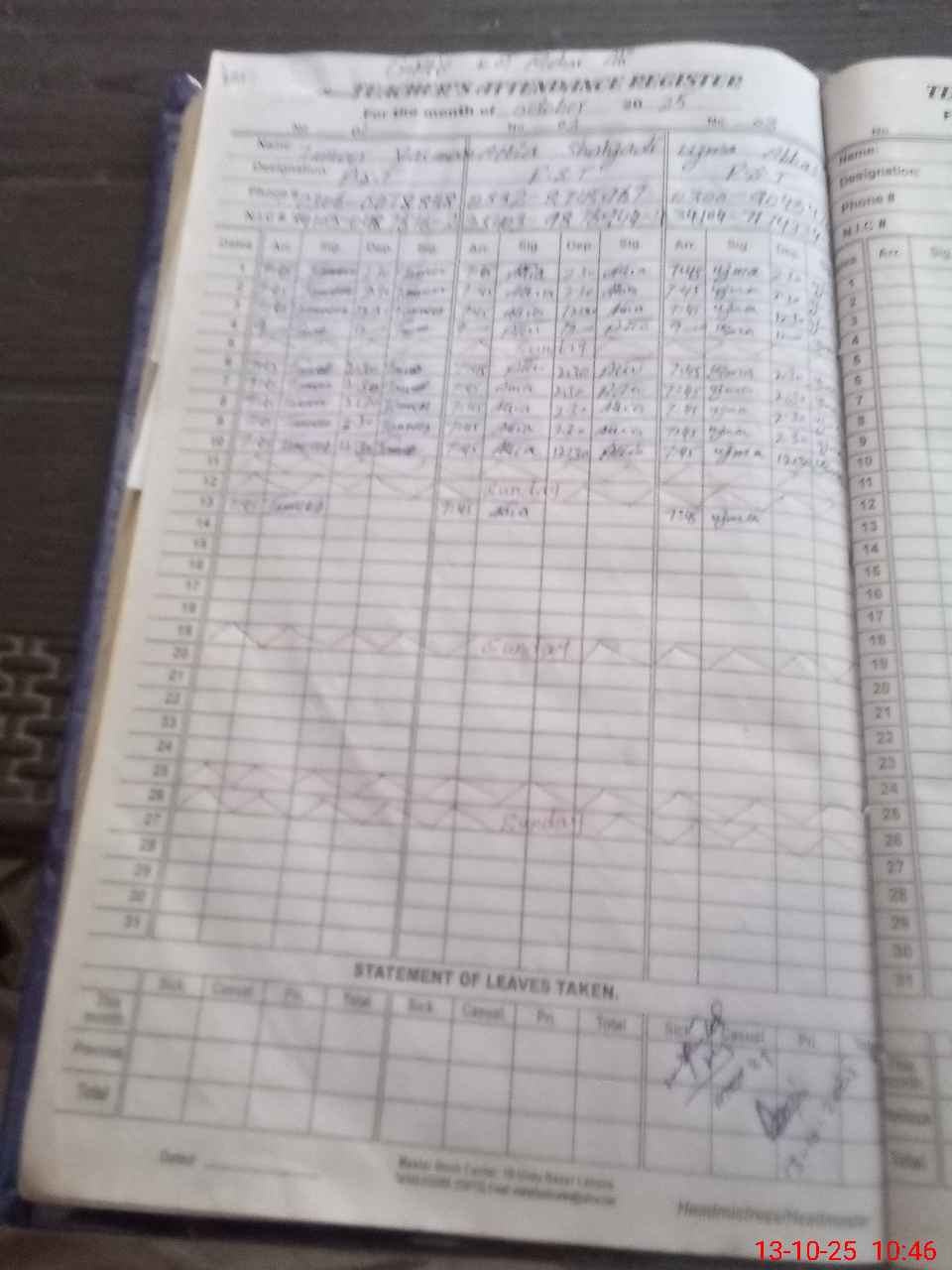 | Name: Ta**** Ya**** Designation: (School Headmaster's/Headmistress's) PST Phone/Cell Number: 03**** |