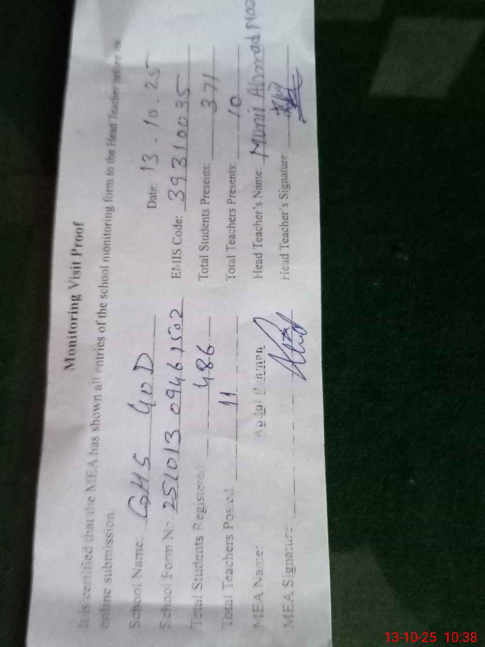 | EMIS Code: 39310035 | Name of School: GHS CHAK NO. 40-D DEPAL PUR | |||