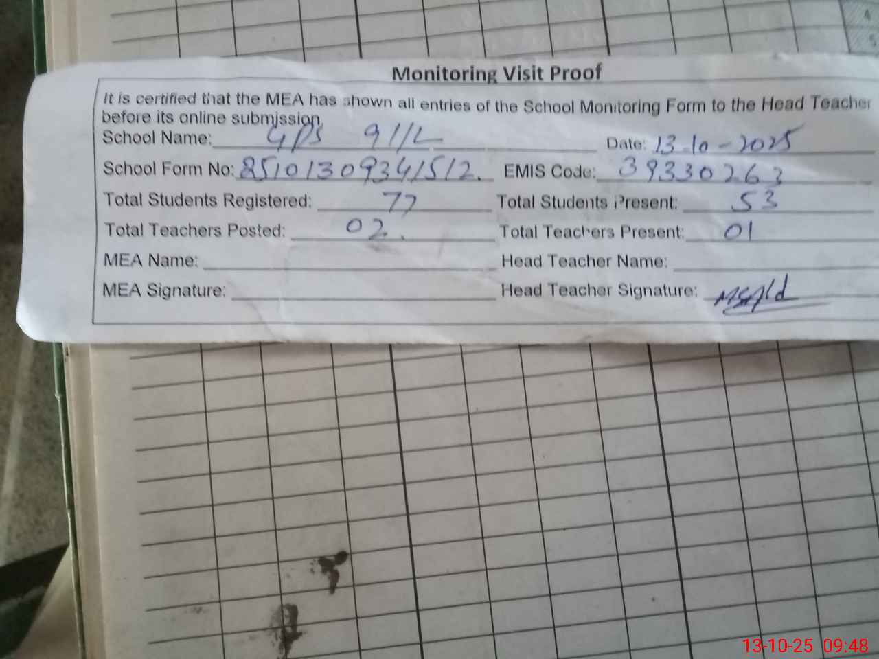 | EMIS Code: 39330263 | Name of School: GPS CHAK 9/I.L | |||