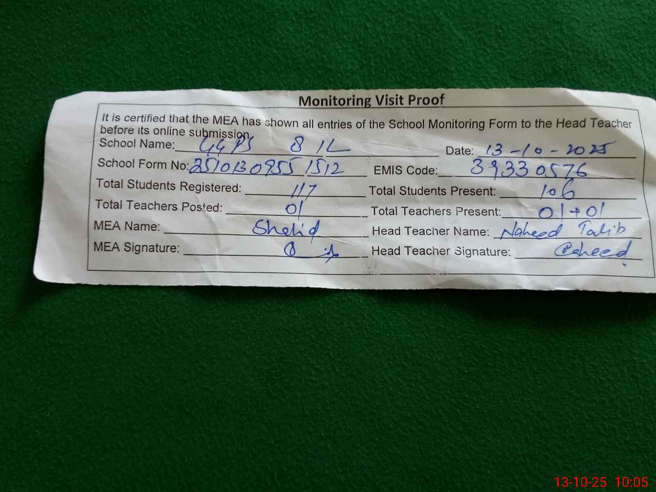 | Certified that this School was Inspected by the Undersigned MEA/DMO Today and the Information Stated Above is as Per Record. | |||||