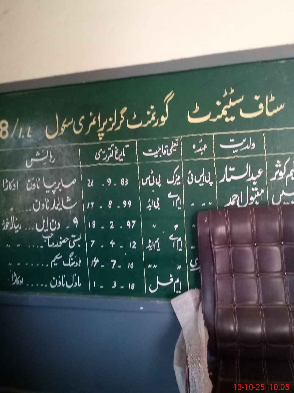 | District: OKARA | Tehsil: RENALA KHURD | Markaz: KISAN-FEMALE | Level: Primary | |