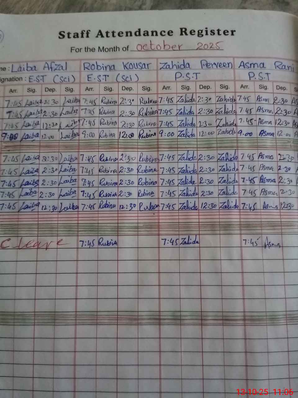 | CNIC | Full Name | Designation | R/C | Absence During Last Calender Month |