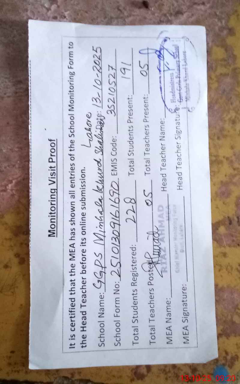 | EMIS Code: 35210527 | Name of School: GGPS MINHALA KHURD | |||