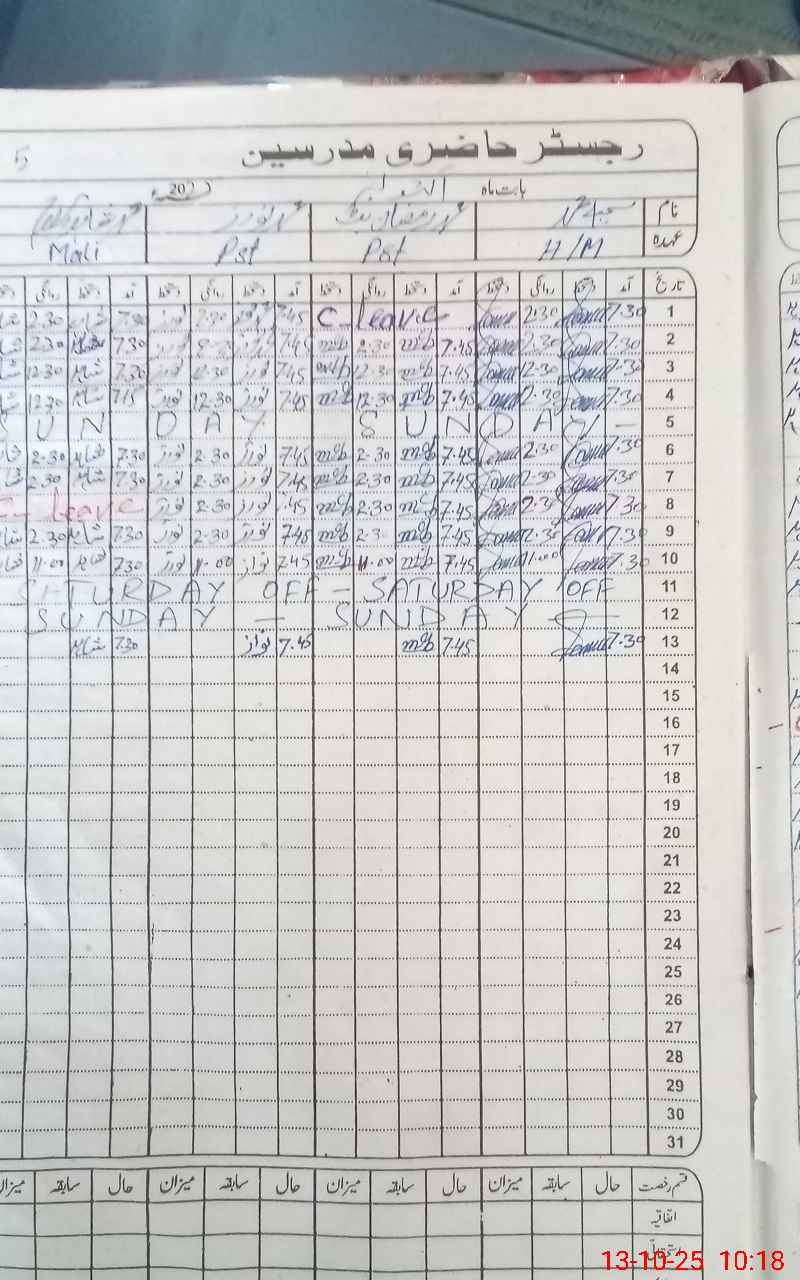 | Remarks (Use Separate Page if Required): Teacher Muhammad subhan reported temporarily stop gap for 89 days on 08 October 2025 About 70 meters boundary wall is below five feet hight and with out barbered wire Theft cases are frequent | |||||
