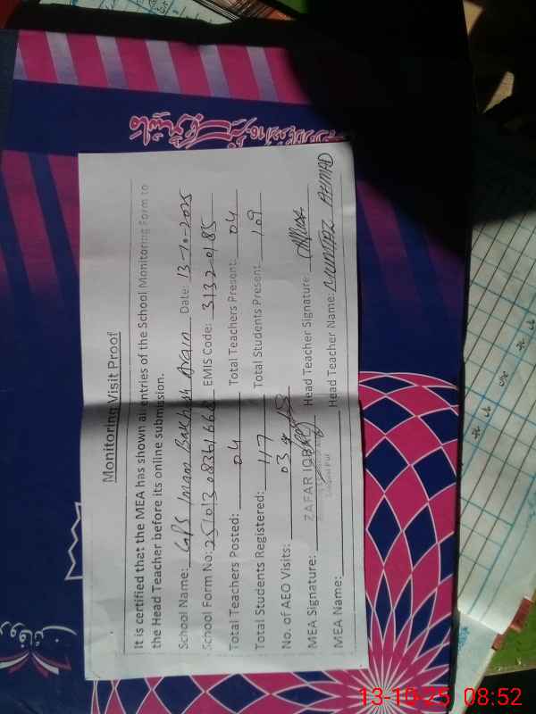 | EMIS Code: 31320185 | Name of School: GPS IMAM BAKHASH ARAIN | |||