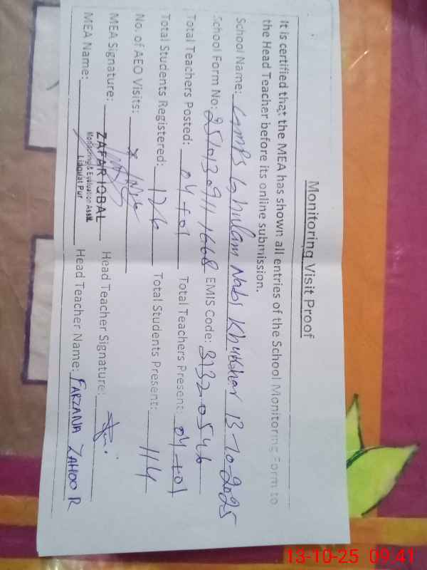 | EMIS Code: 31320546 | Name of School: GMPS GHULAM NABI KHUKHAR | |||