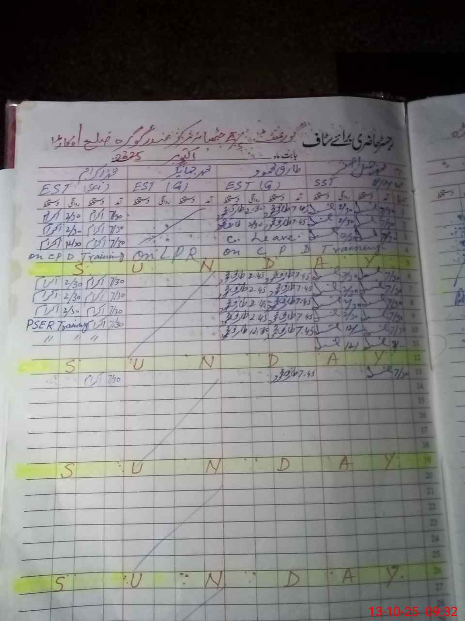 | CNIC | Full Name | Designation | R/C | Absence During Last Calender Month |