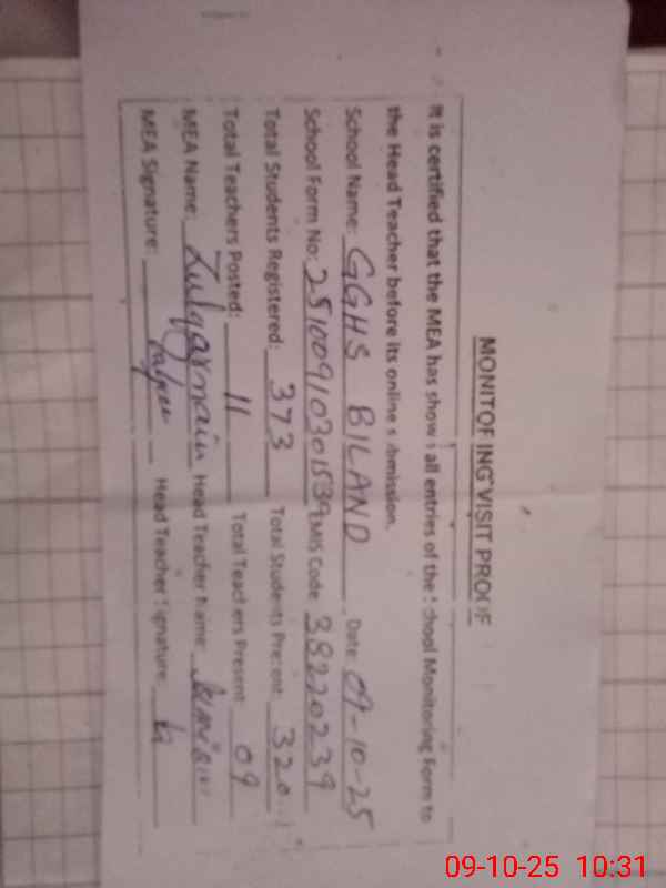 | Certified that this School was Inspected by the Undersigned MEA/DMO Today and the Information Stated Above is as Per Record. | |||||