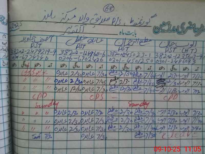 | Name: Mu**** Ay**** Kh**** Designation: (School Headmaster's/Headmistress's) PST Phone/Cell Number: 03**** |