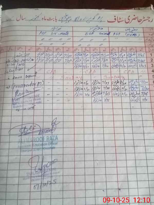 | Name: RA**** KH**** Designation: (School Headmaster's/Headmistress's) PST Phone/Cell Number: 03**** |
