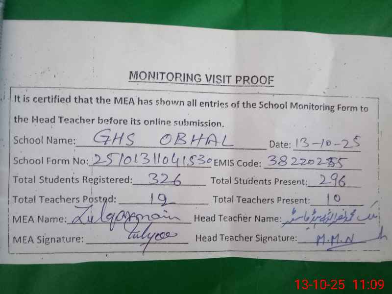 | EMIS Code: 38220255 | Name of School: GHS OBHAL | |||