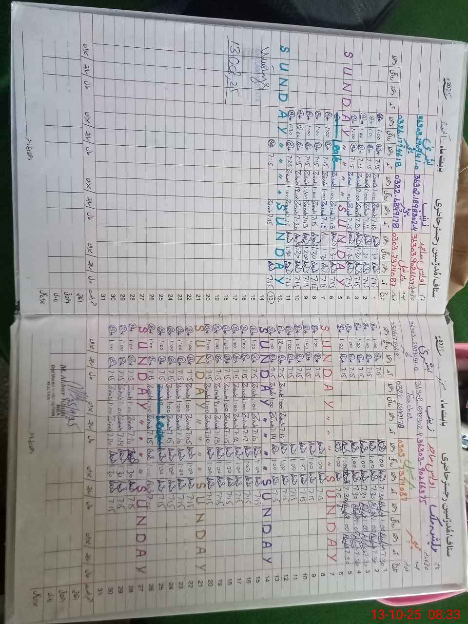 | CNIC | Full Name | Designation | R/C | Absence During Last Calender Month |