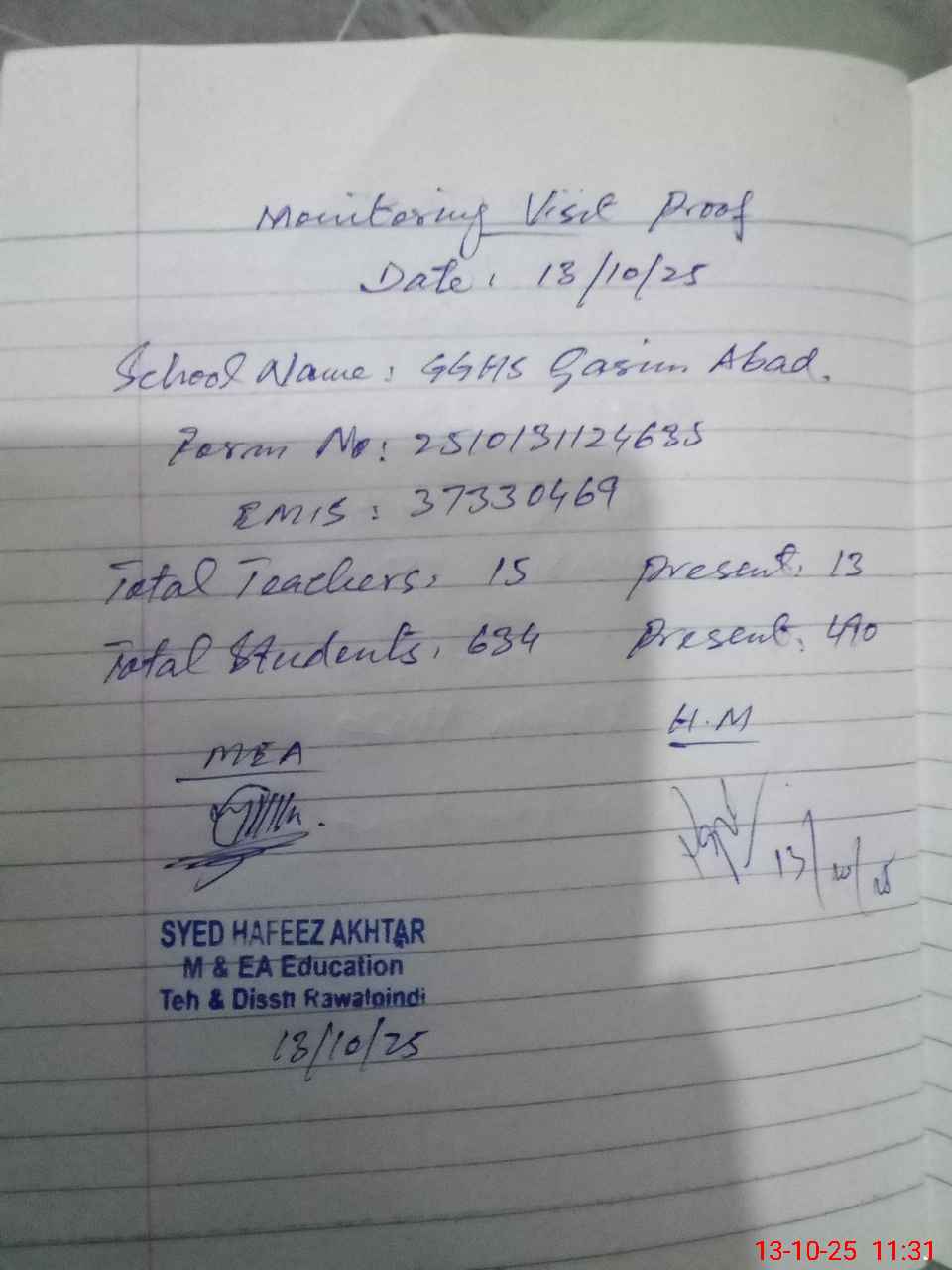 | EMIS Code: 37330469 | Name of School: GGHS QASIM ABAD KOHANOOR MILL | |||