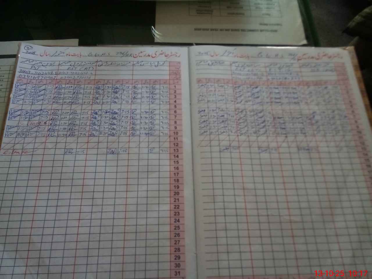 | CNIC | Full Name | Designation | R/C | Absence During Last Calender Month |