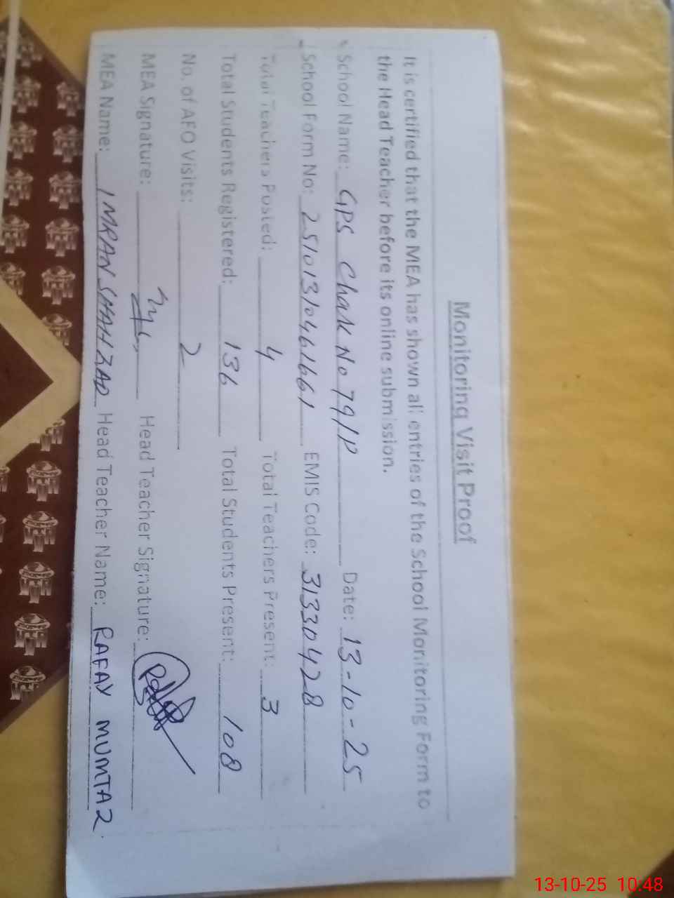 | EMIS Code: 31330428 | Name of School: GPS CHAK NO. 79/P | |||