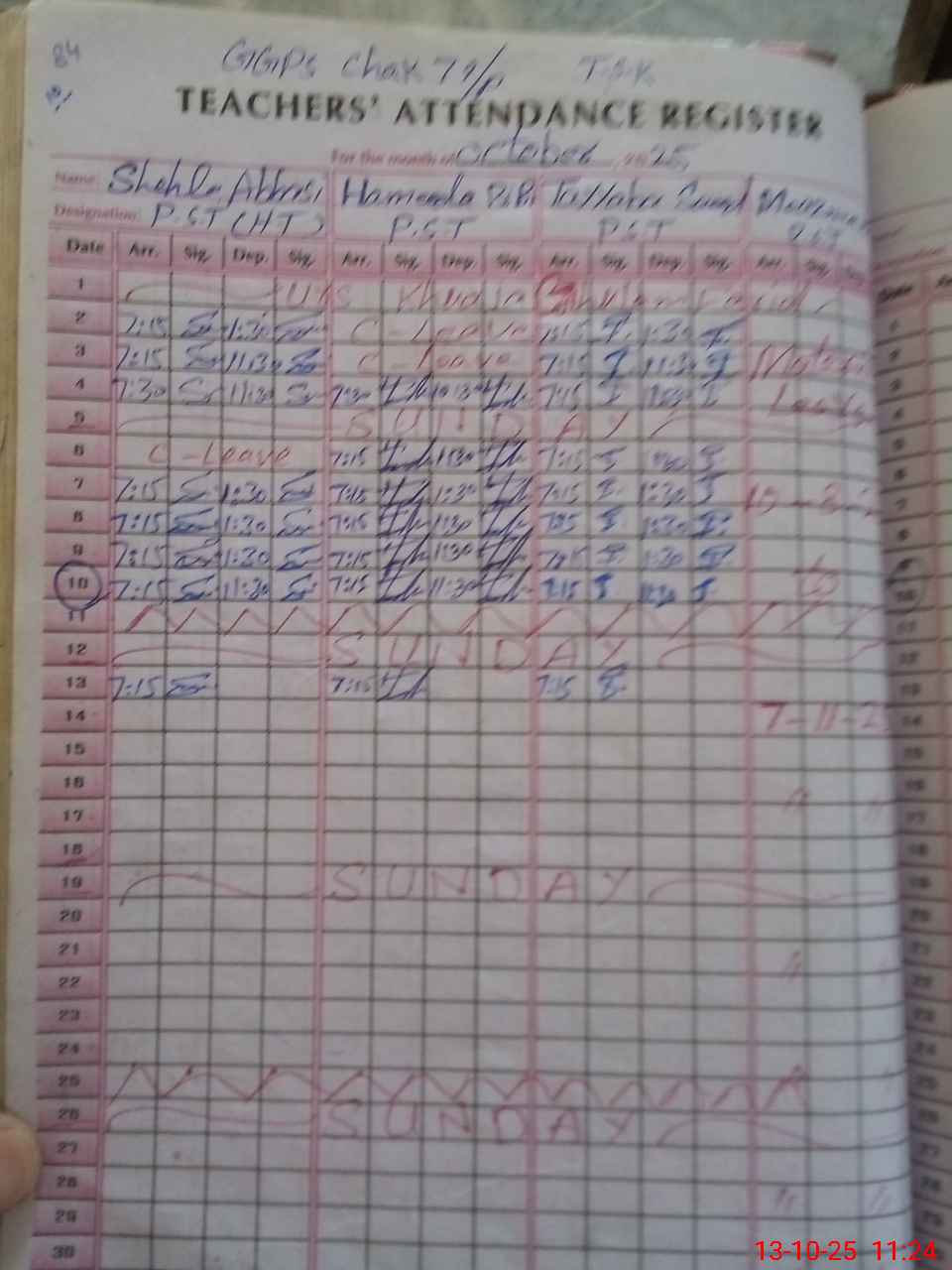 | Name: SH**** AB**** Designation: (School Headmaster's/Headmistress's) PST/PTC/JV Phone/Cell Number: 03**** |