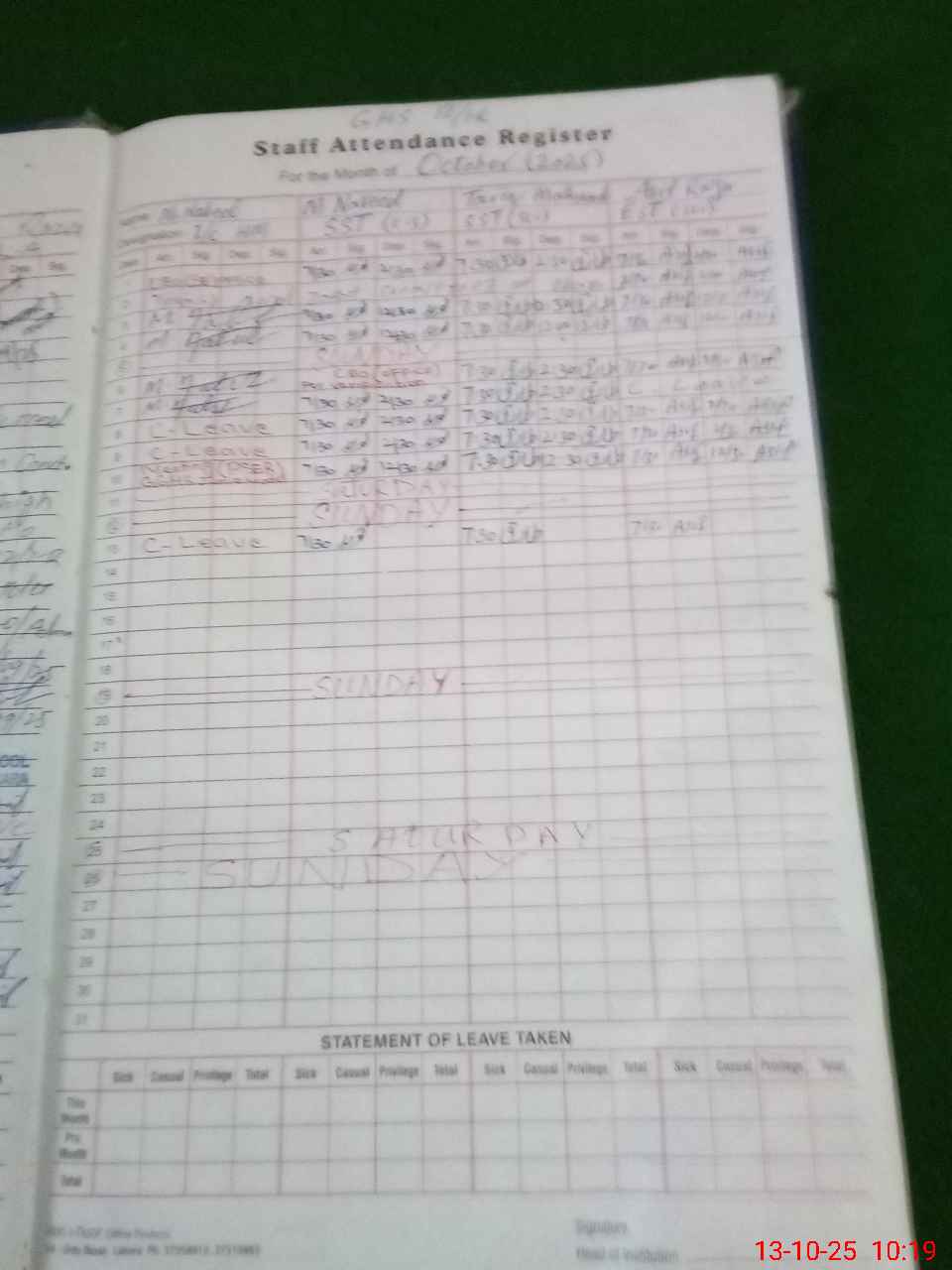 | 35**** | Ha**** Mu**** Ha**** | 3 | 1 | 0 | 0 | 0 | 0 | 0 | 0 | 0 | 0 | 0 | Exam Duty |