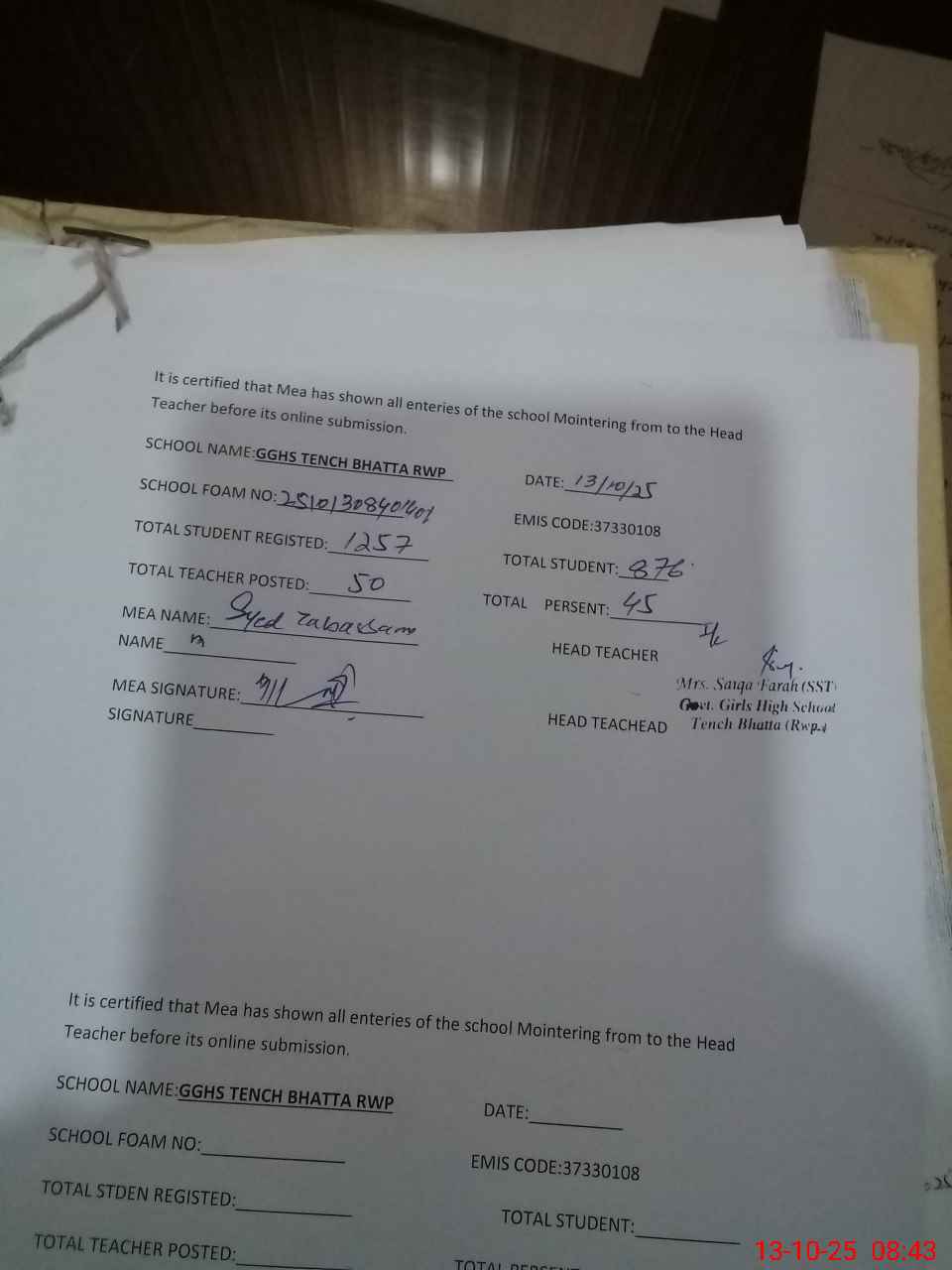 | EMIS Code: 37330108 | Name of School: GGHS TENCH BHATIA | |||
