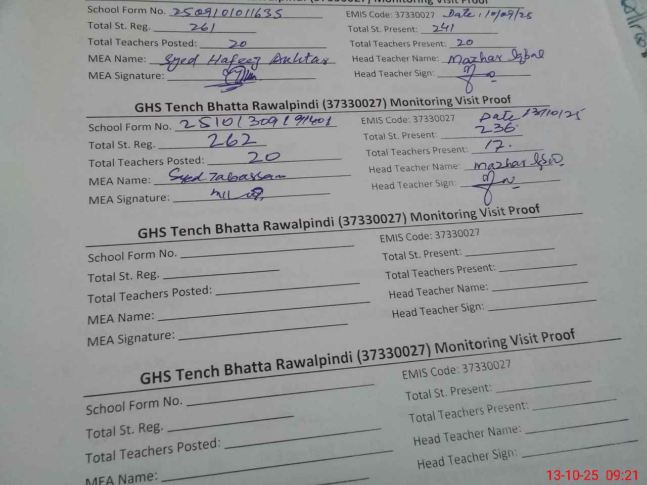 | EMIS Code: 37330027 | Name of School: GHS TENCH BHATTA | |||