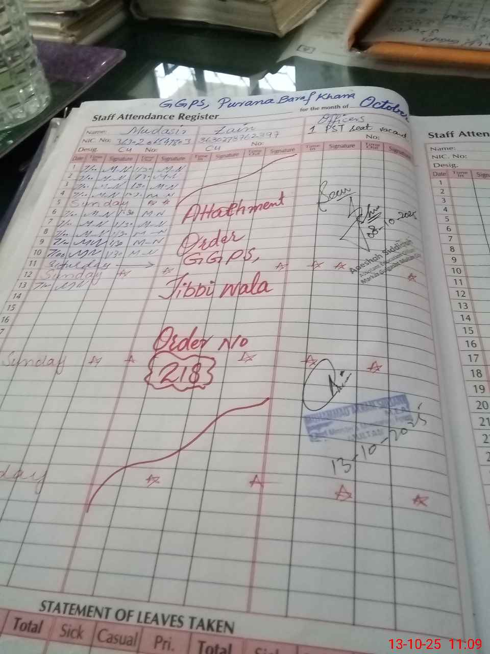 | CNIC | Full Name | Designation | R/C | Absence During Last Calender Month |