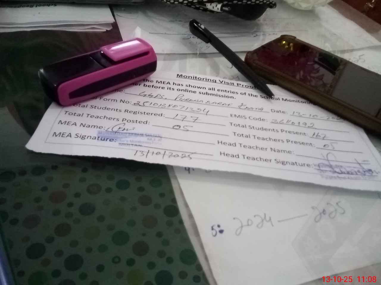 | Attendance Register | Head Teacher | MEA with School | Visit Proof |