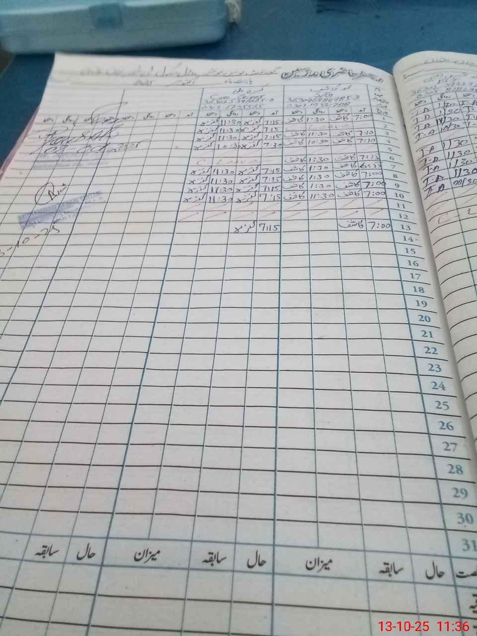 | CNIC | Full Name | Designation | R/C | Absence during last cal. month |