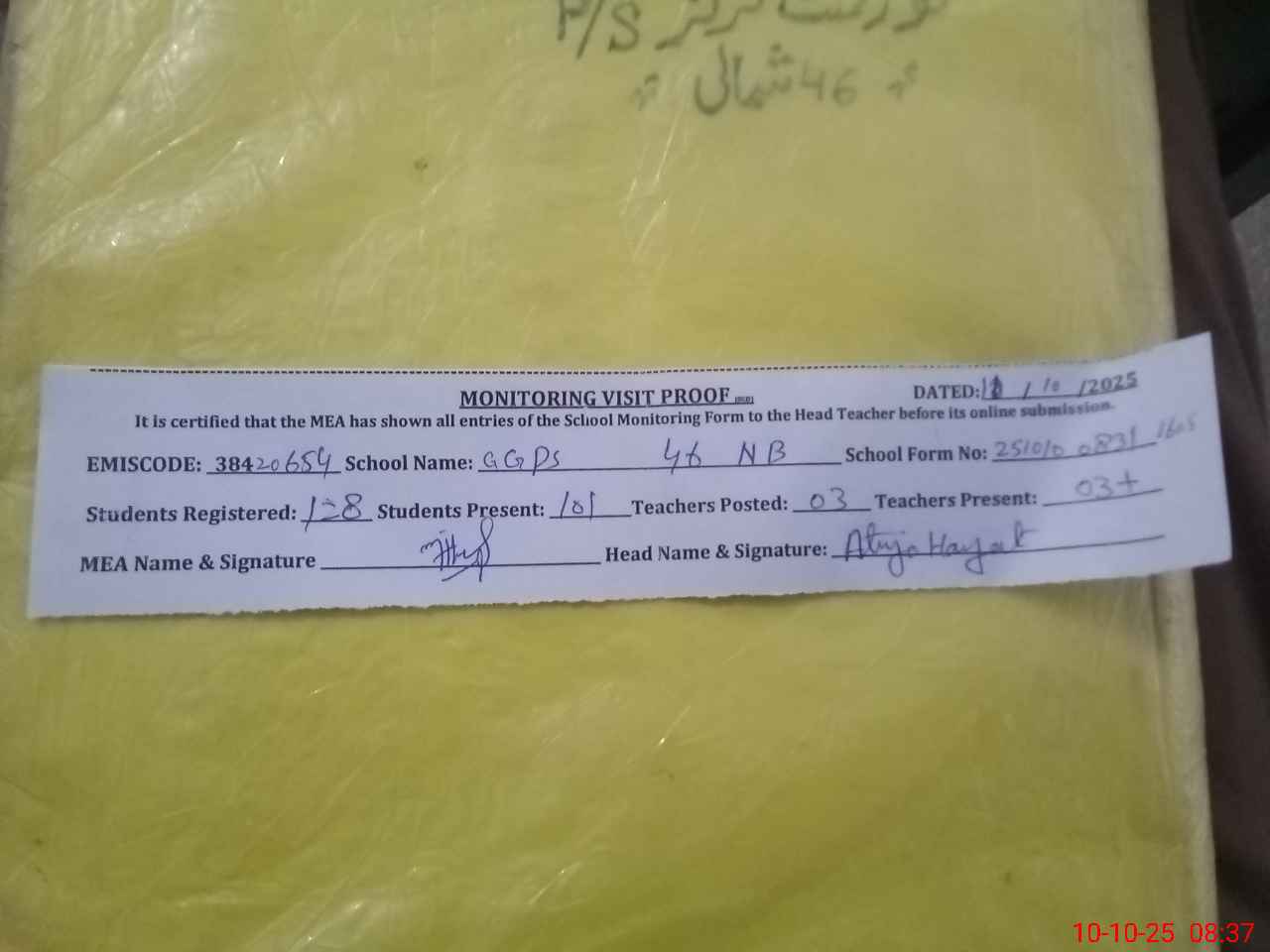 | EMIS Code: 38420654 | Name of School: GGPS CHAK NO.46 NB | |||