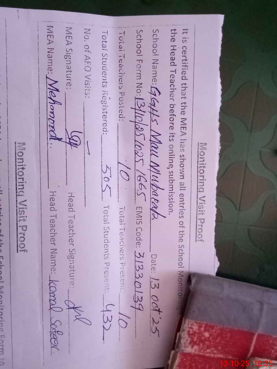 | EMIS Code: 31330139 | Name of School: GGHS MAU MUBARAK | |||