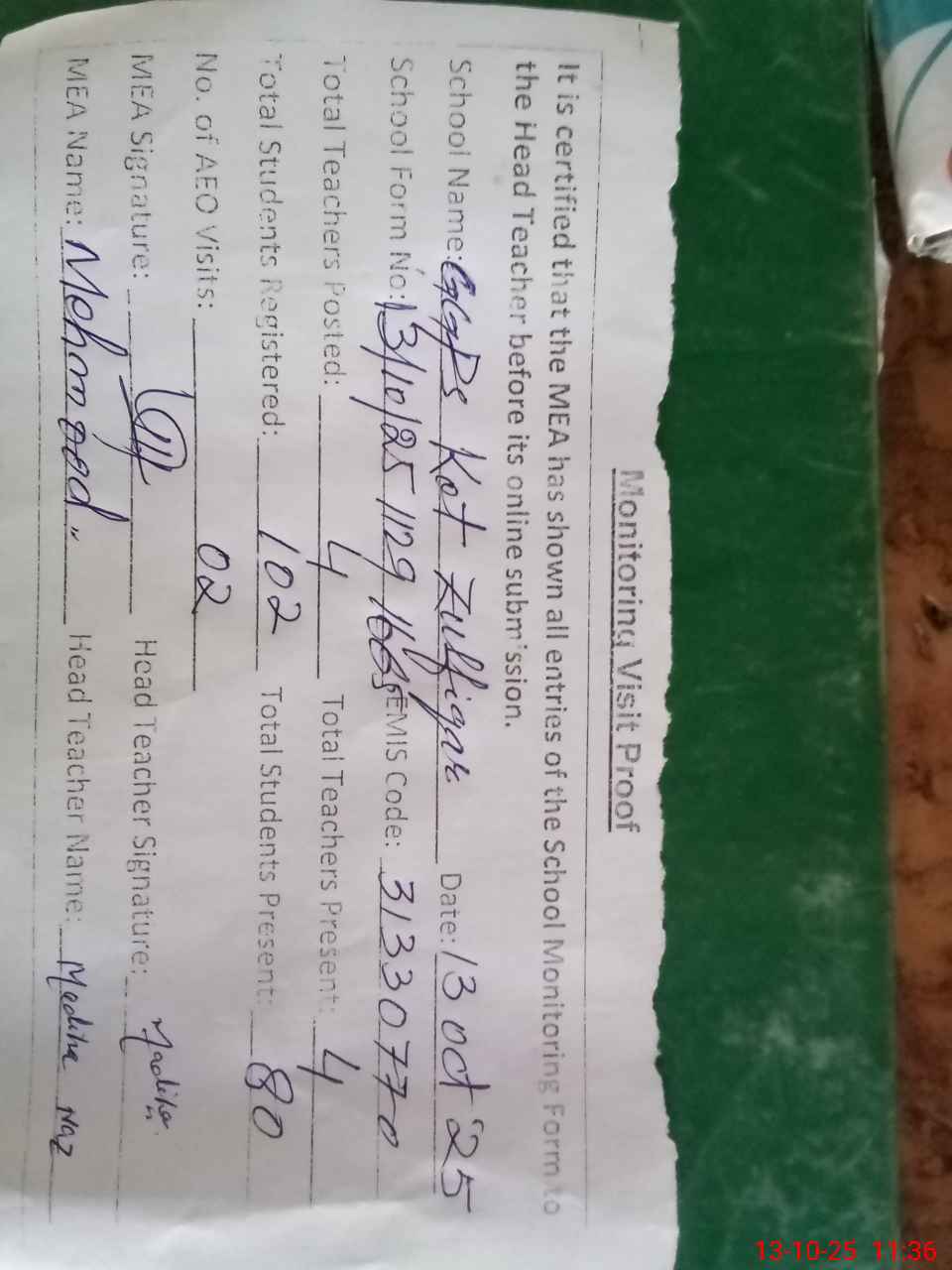 | EMIS Code: 31330770 | Name of School: GGPS KOT ZULFAQAR ALI | |||