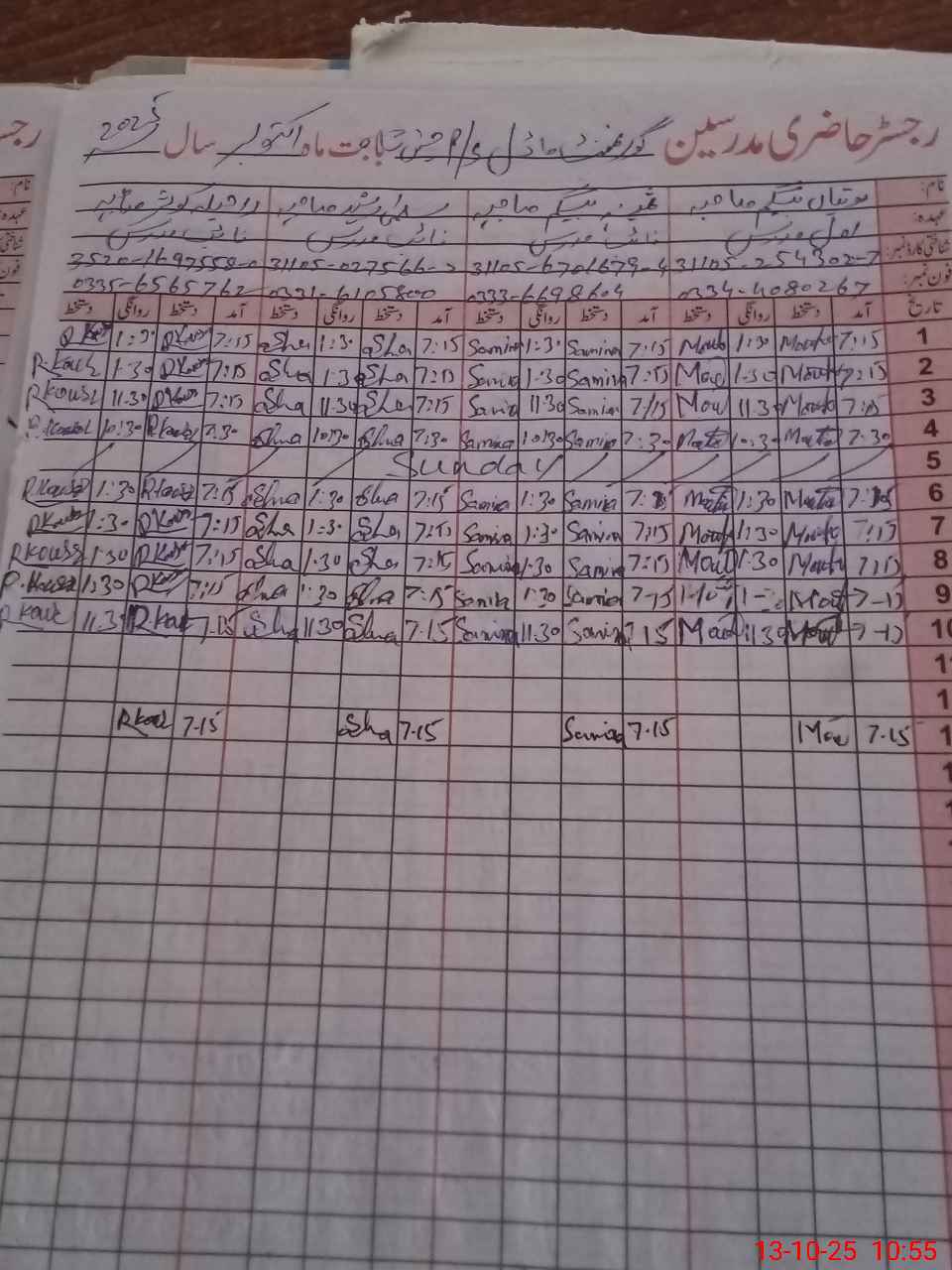 | CNIC | Full Name | Designation | R/C | Absence During Last Calender Month |