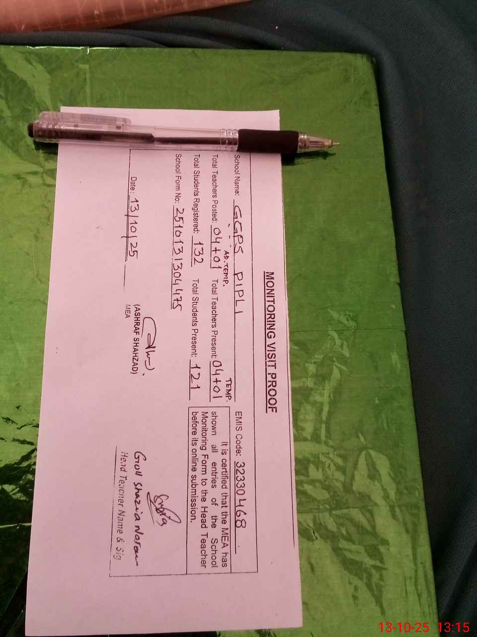 | EMIS Code: 32330468 | Name of School: GGPS PIPLI | |||