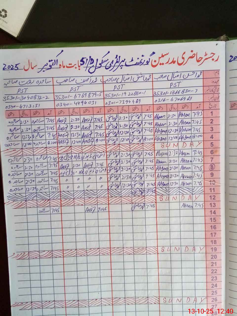 | Name: Ah**** Iq**** Designation: (School Headmaster's/Headmistress's) PST Phone/Cell Number: 03**** |