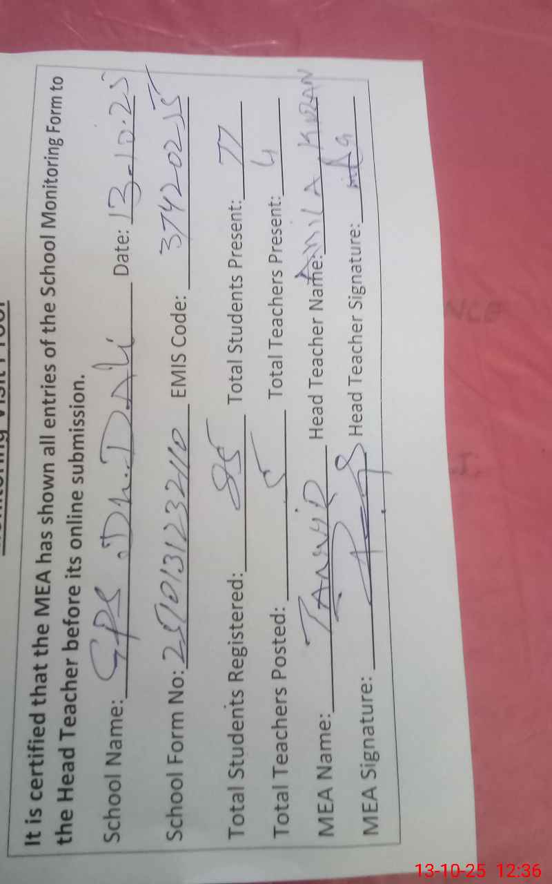 | EMIS Code: 37420255 | Name of School: GPS DHOK DALI | |||