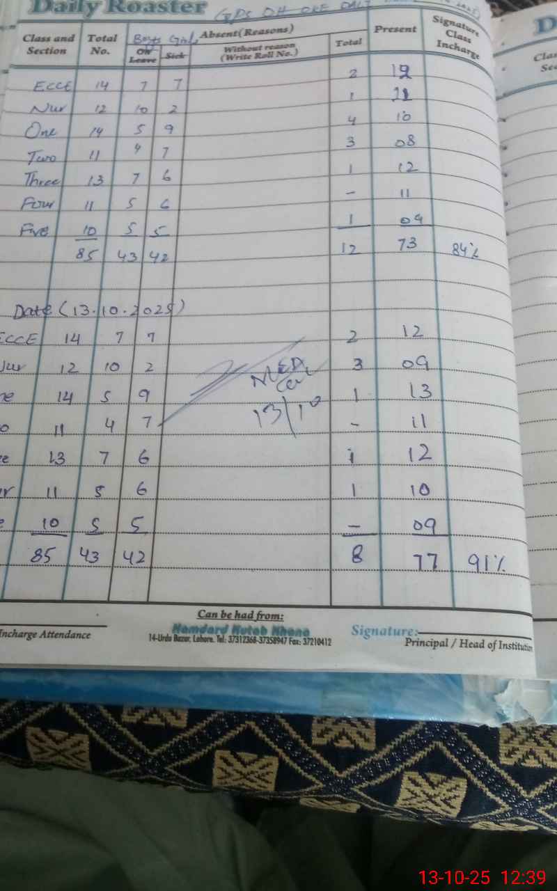 | Attendance Register | Head Teacher | MEA with School | Visit Proof |